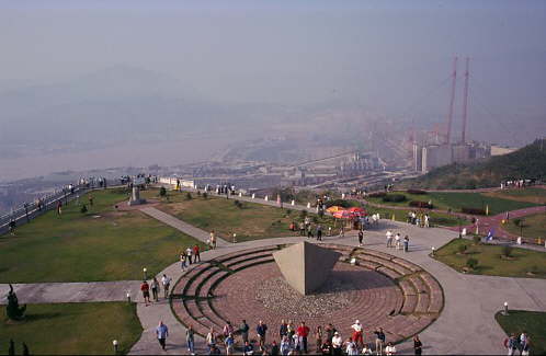 at the site of the three gorges project. One can see the gigantic dam in the background.
