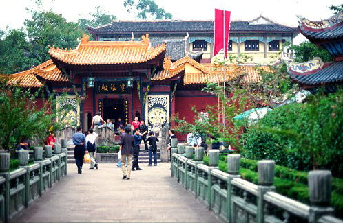 The famous Ghost City Fengdu was said to be inhabited by devils and ghosts. There were ways and means to protect the place though: for example, the small bridge in the background was a test: the dead had to cross it with only 3 steps. Evil ghosts would not pass this test, but good ghosts would get across with no problem.
