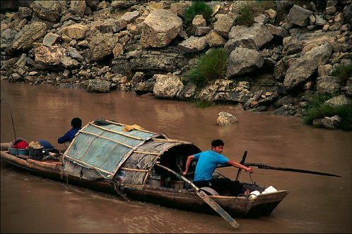The river is the logical means of transport for the local people. Small boats such as this still outnumber modern motor boats and ferries.